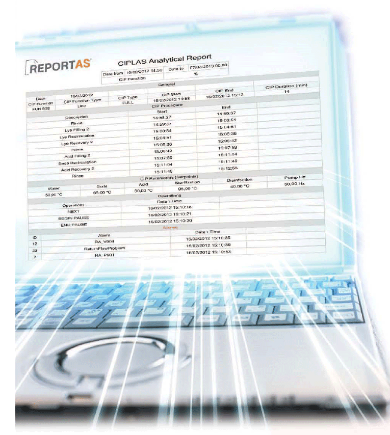It is the ideal solution for all dairies. Developed based on the latest technologies it provides collection, archiving and presentation of all production date in real time. We supply ready pre-developed reports for Milk Reception, Product Mixing and Recipe Handling, Pasteurization, Storage, Packaging and CIP. It is the ideal management tool for immediate access to all production data. It is suitable for all dairies. (REPORTAS Brochure)